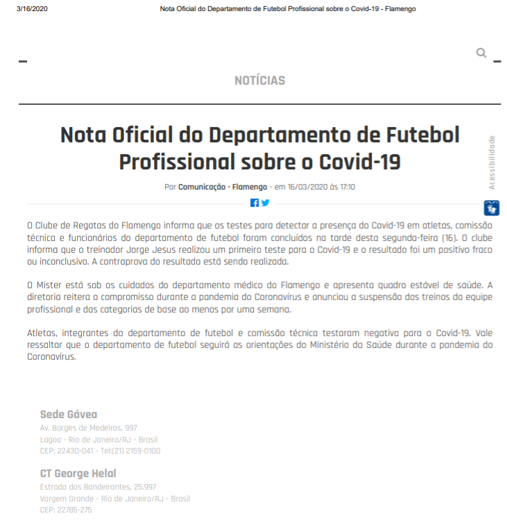 نتائج التحاليل التي خضع لها اللاعب جاءت إيجابية، والنادي يبدأ إجراءات العزل.
