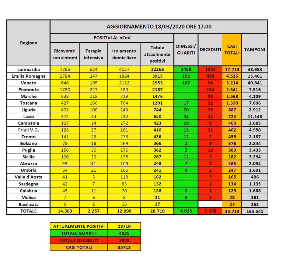 🚨🚨🚨إيطاليا ترصد 1247 حالة جديدة مصابة بالفيروس و36 حالة وفاة جديدة.