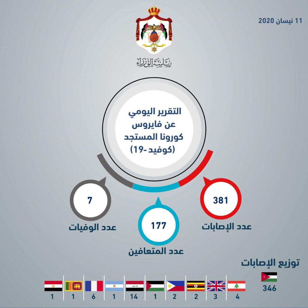 لليوم الثاني على التوالي، الأردن يعلن عدم تسجيل أي حالات إصابة جديدة داخل المملكة.
