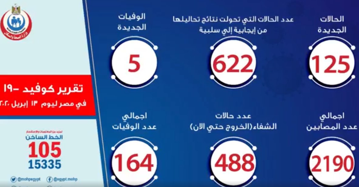 🚨🚨🚨 وزارة الصحة المصرية تسجل حالة وفاة جديدة بسبب كورونا. (لا تفاصيل عن الحالة)