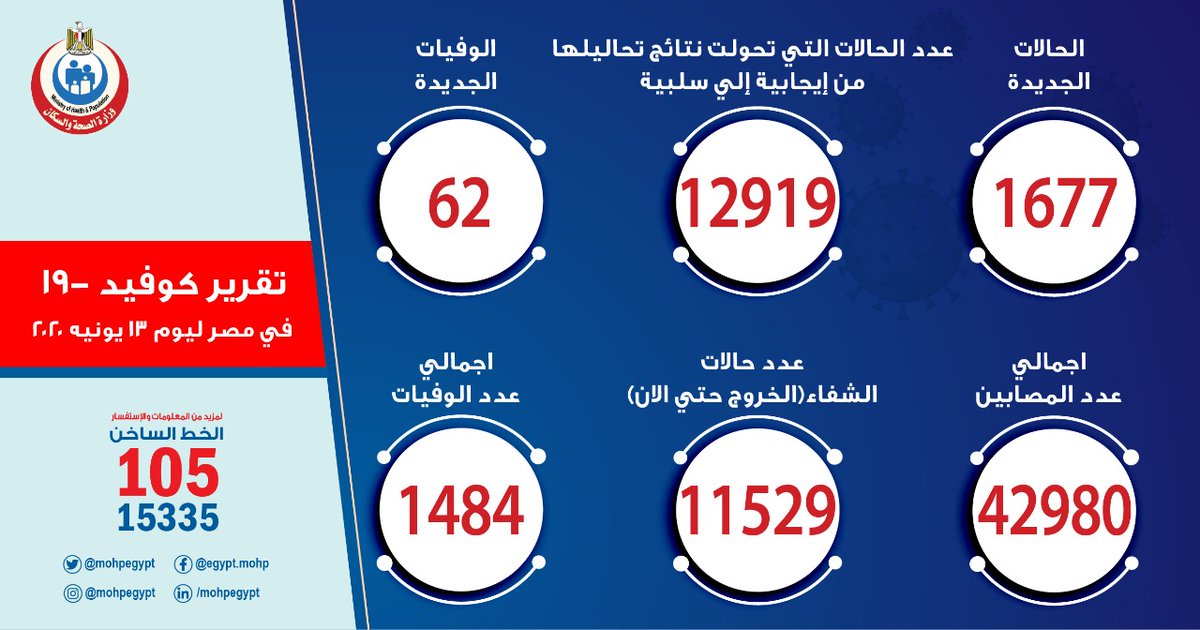 🚨🚨🚨🚨🚨 وزارة الصحة المصرية تعلن بشكل رسمي عن رصد 12 حالة جديدة مصابة بالفيروس.