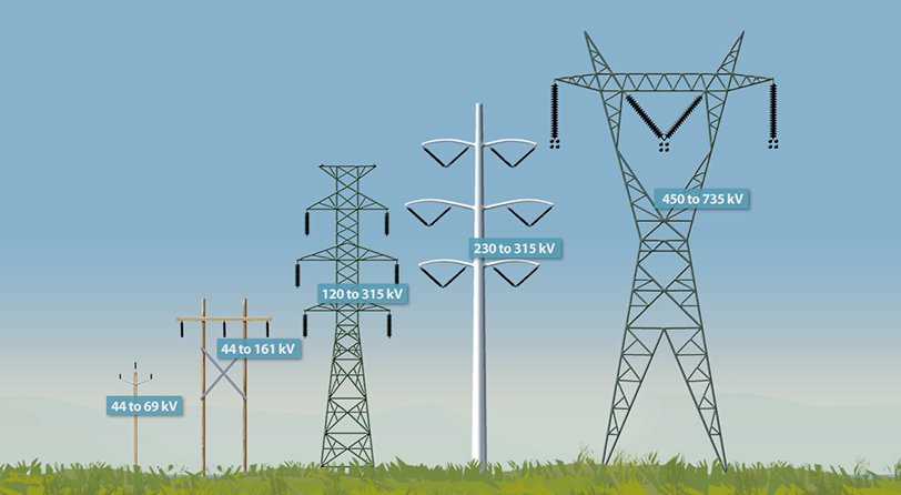 نلاحظ هنا انه كلما زاد الجهد الكهربائي في خطوط النقل، تزيد المسافه بين خطوط النقل والأرض ! والسبب هو للسلامة لكن لماذا؟