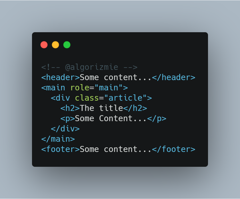 يستعمل هذا العنصر مرة واحدة في الصفحة الواحدة ويمثل بالنسبة للمتصفح العنصر الي يحتوي على جميع العناصر (tags) الرئيسة للصفحة.