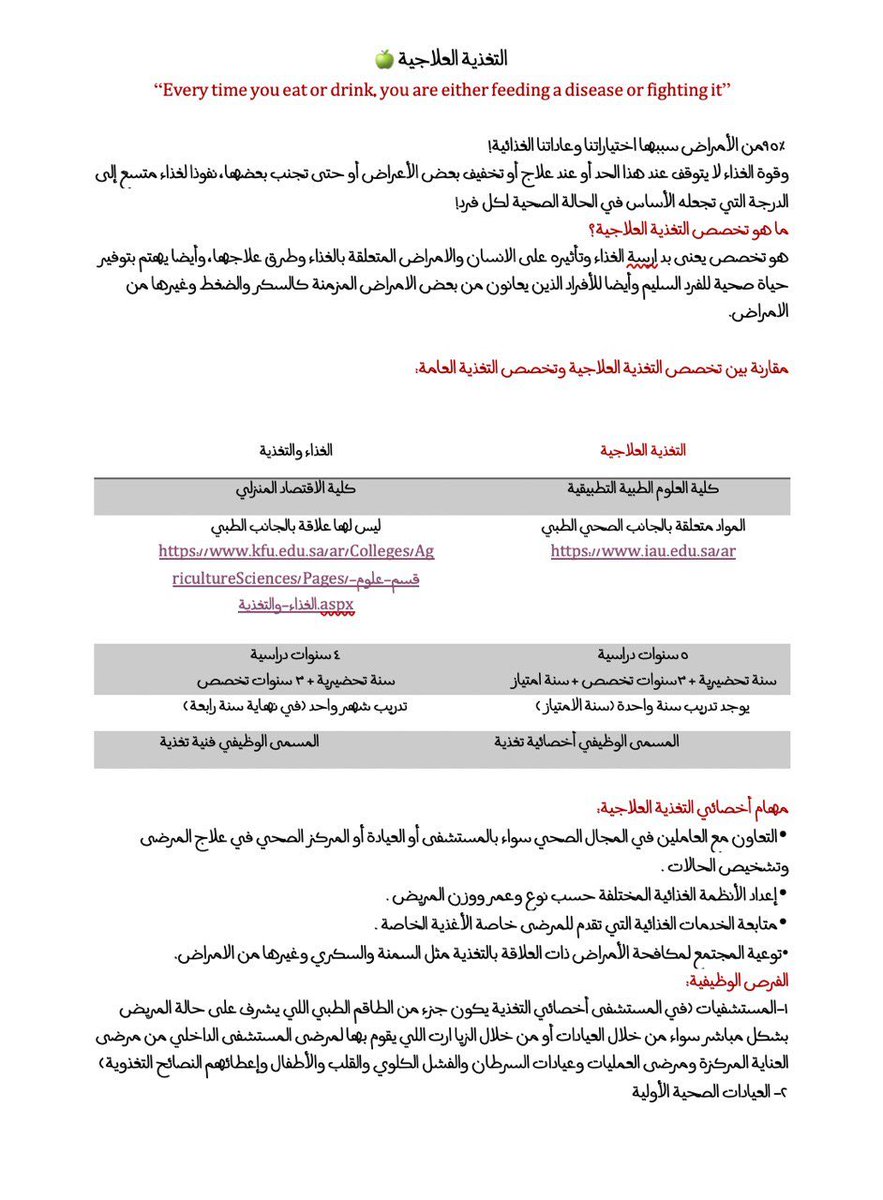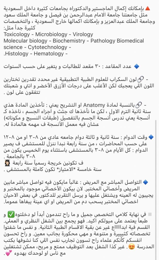 📍ثريد عن بعض التخصصات الصحية من طلاب وطالبات جامعة الامام عبدالرحمن بن فيصل