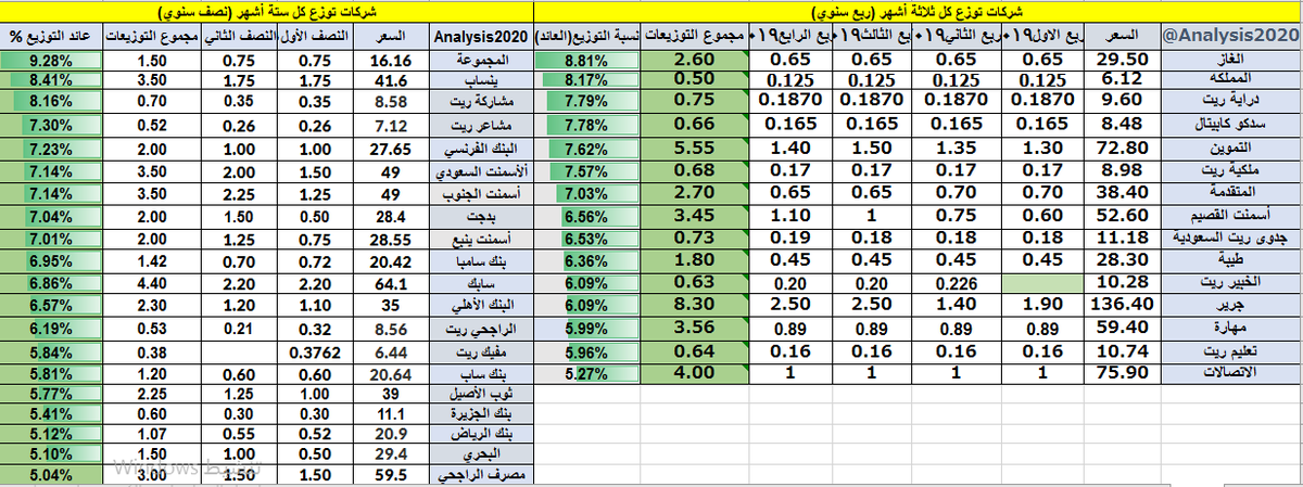 توزع سنوي مثل الانماء والمراعي والبابطين والكهرباء