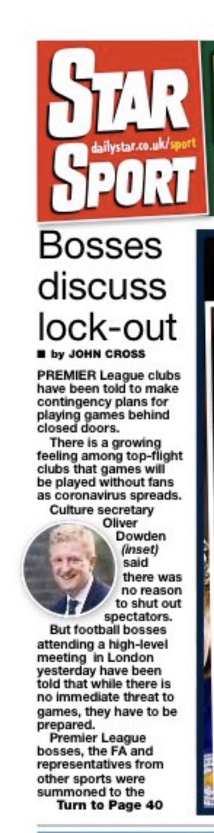 ميرور البريطانية : متابعة مستمرة للأوضاع الصحية و من الممكن لعب مباريات الدوري الإنجليزي الممتاز خلف أبواب مغلقة و من دون جمهور بسبب تفشي فيروس #كورونا