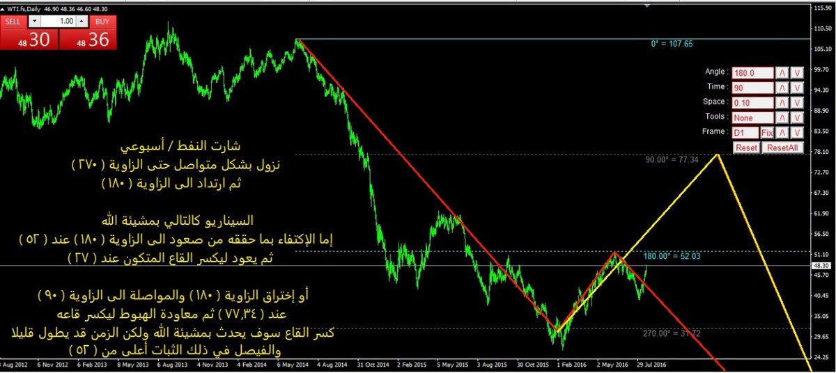 فالمتوقع في قادم الأيام الإرتداد الى مستويات ( 40.89 / 51.63 ) قبل أن يعود لاكمال الدورة الزمنية عند الزاوية 360