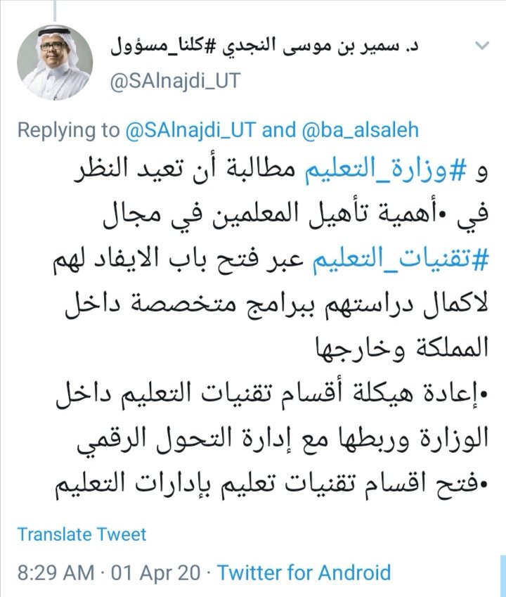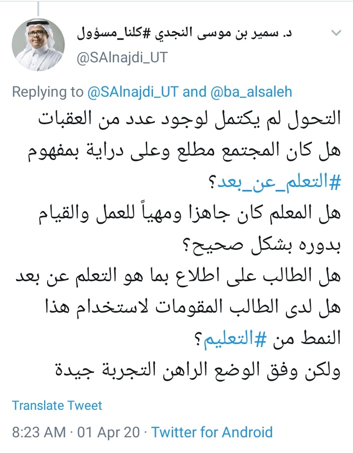 التجربة الحالية لتوظيف #التعلم_عن_بعد في #وزارة_التعليم تجربة جيدة في ظل الوضع الراهن