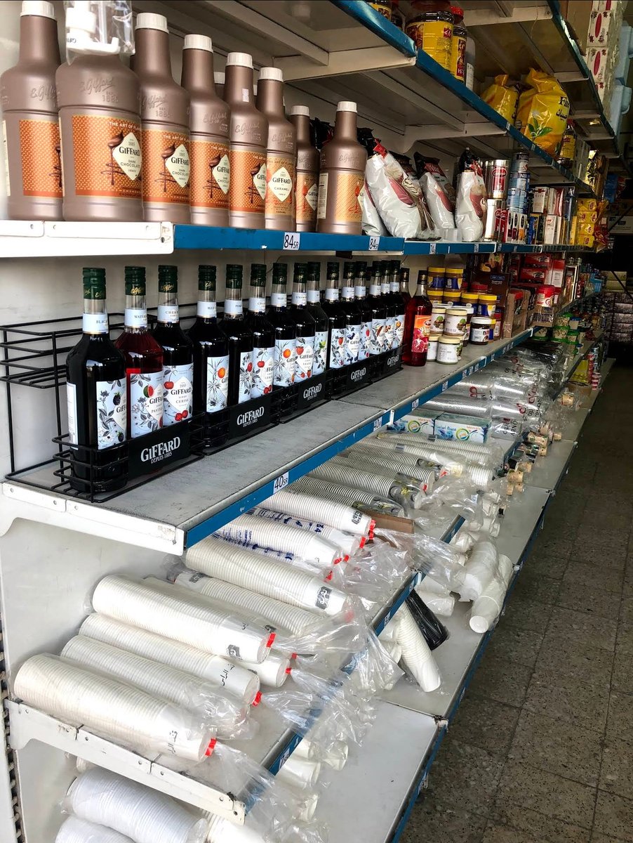 يوفرون جميع الخلطات والصوصات الخاصة بمشروبات القهوة مثل السبانش لاتيه ، البستاشيو ، الفانيلا ، وصوصات الكريب والوافل ، ونكهات الموهيتو والمشروبات الباردة بالإضافة للأكواب .