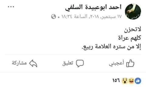 ٣- قول أحمد أبي عبيدة الجزائري: " لا تحزن: كلهم عراة إلا من ستره العلامة ربيع"