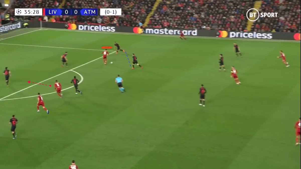 ▪️دور - فينالدوم - بدون كرة جدًا فعال دائمًا ما يحاول فيرمينو و صلاح مع دخول روبرتسون تشتيت مدافعي #أتليتكو عن مراقبته