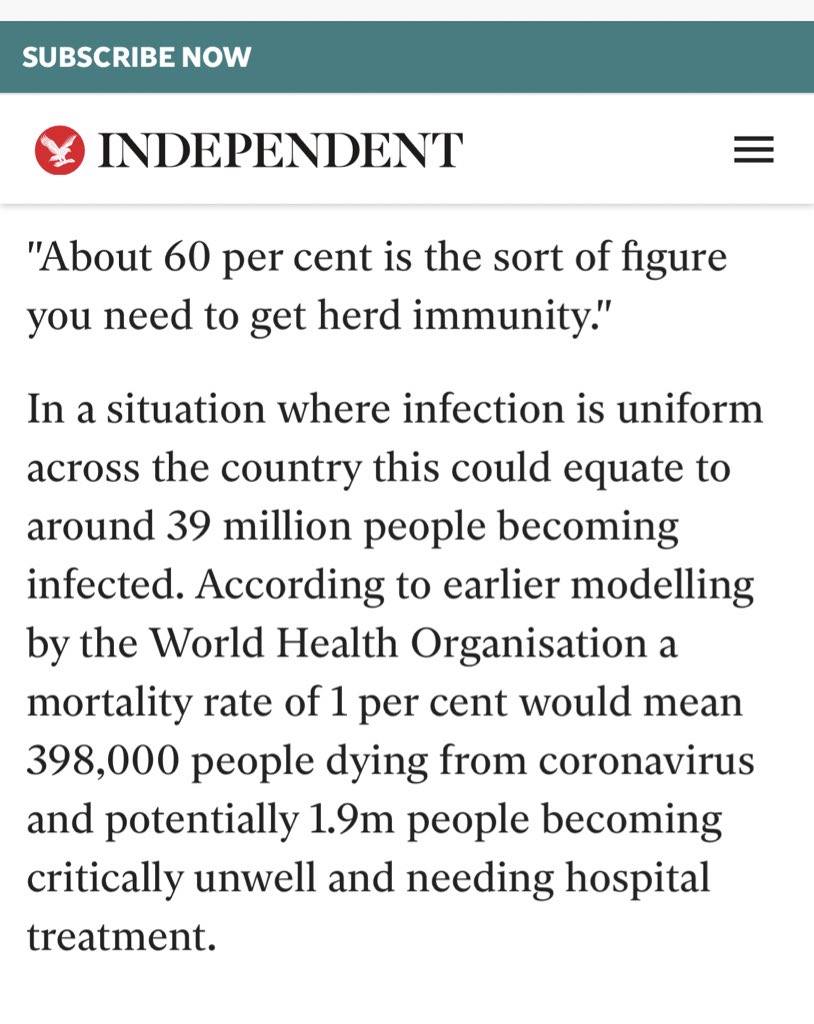 سيستمر المرض بالانتشار لعدة أشهر قادمة، والأرقام الحقيقية للمصابين اكبر بكثير من الأرقام المثبتة بالفحوصات الطبية، يوجد تقريباً ١٠ الاف مصاب في بريطانيا وليس ٦٠٠ شخص وهو الرقم المعلن.