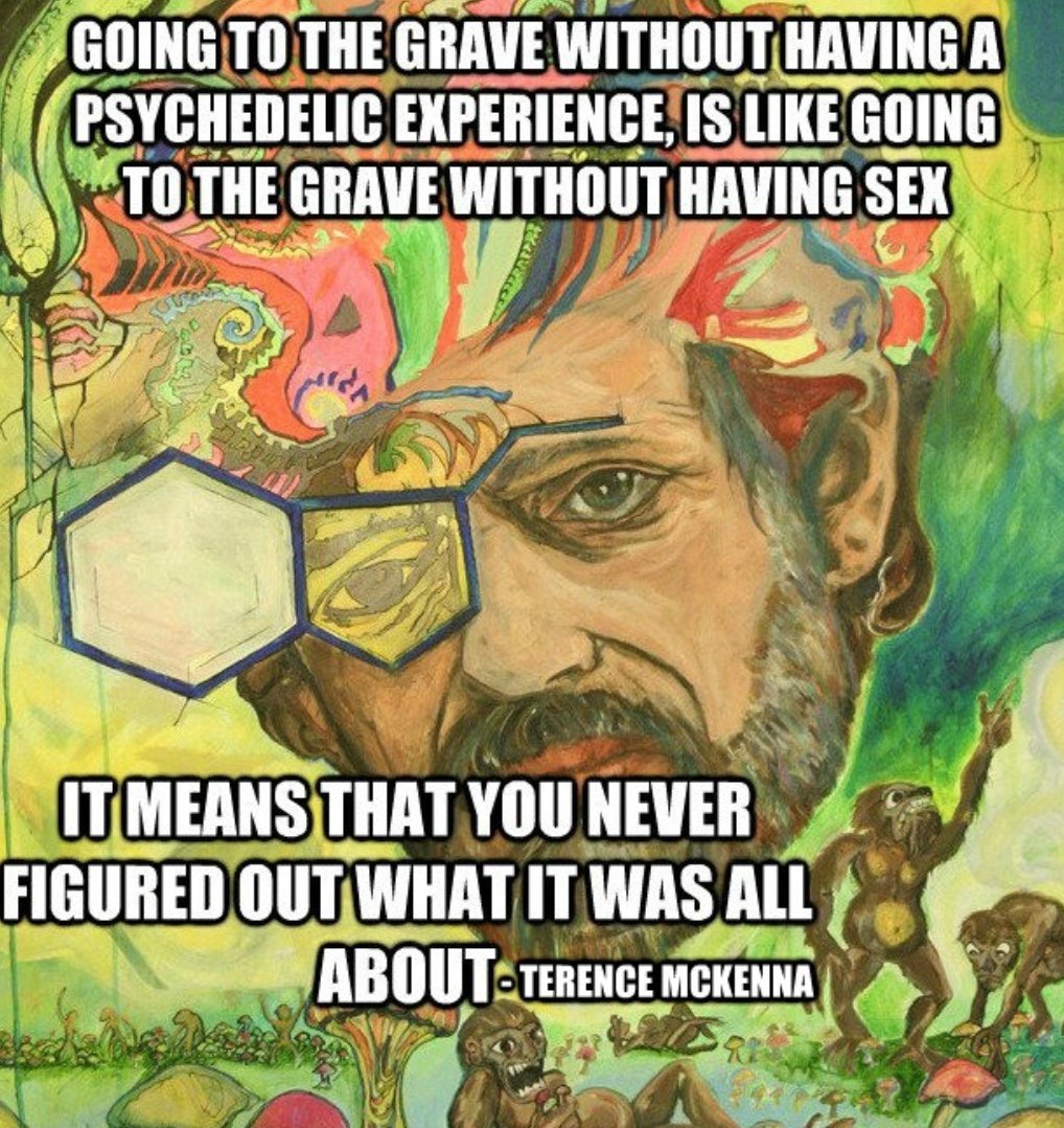 يقول ترنس مكنا : السايكدلكس تزيح هلوسة الايجو و تظهر حقيقة الوجود. لساعات محدودة يصبح باستطاعتنا التمتع برؤية نقية للوجود، بعيداً عن مركزية الأنا.. كأننا ننظر لكل شئ أول مرة. تبدو كل شجرة، حجرة، كل لون و كل صوت...كل شئ.. تجلّياً مدهشاً لمعجزة الوجود.