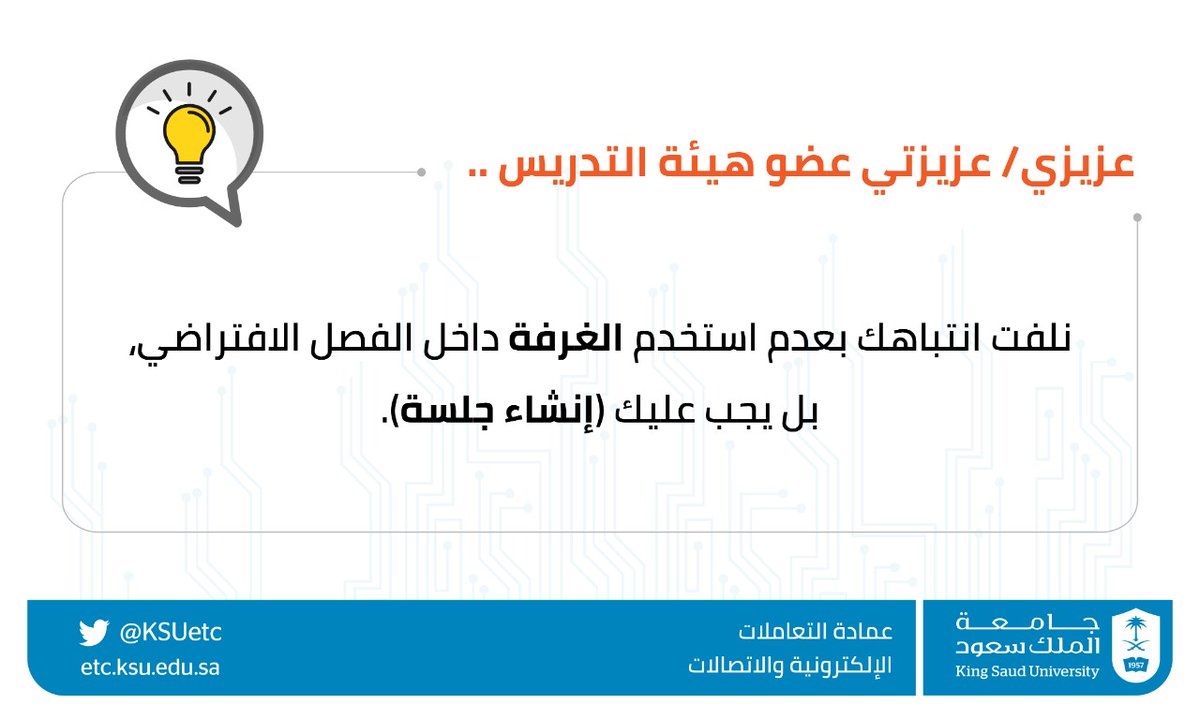 نلفت انتباهك بعدم استخدم الغرفة داخل #الفصل_الافتراضي ، بل يجب عليك (إنشاء جلسة).