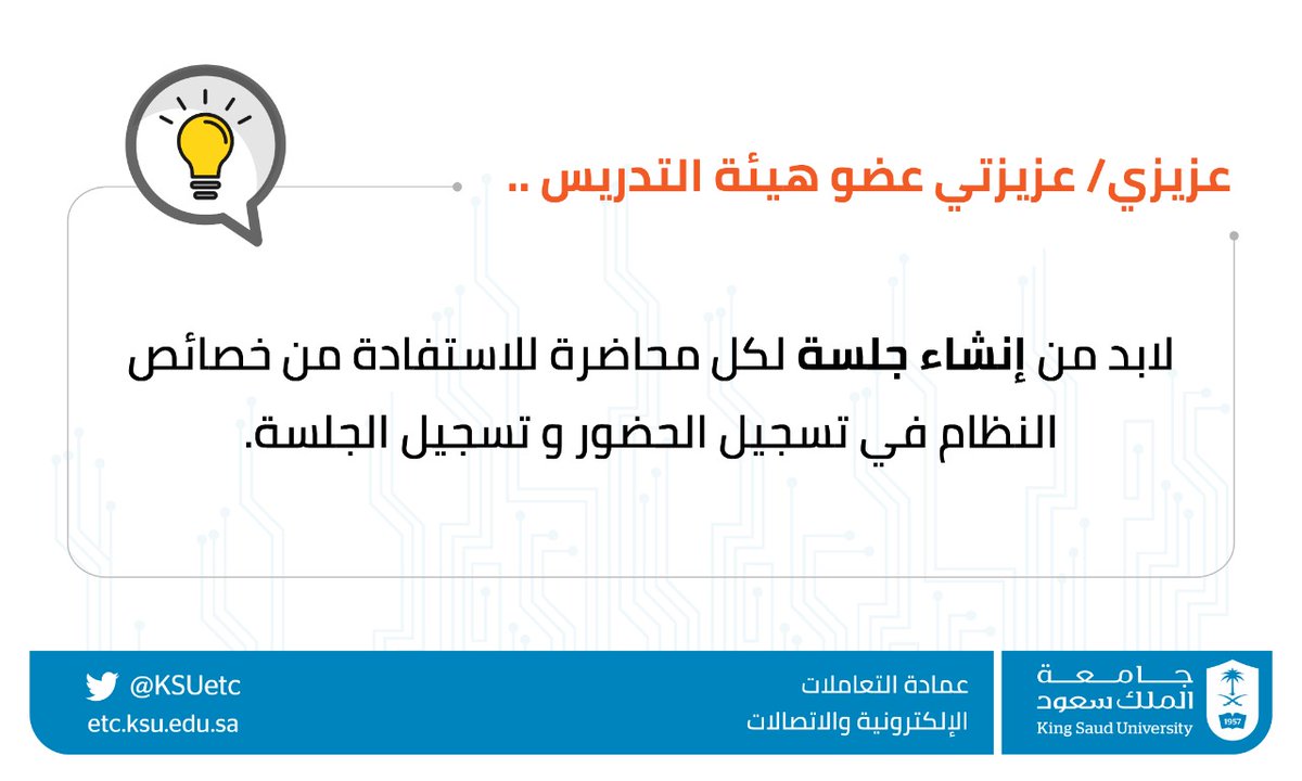 لابد من إنشاء جلسة لكل محاضرة للاستفادة من خصائص النظام في تسجيل الحضور تسجيل الجلسة.