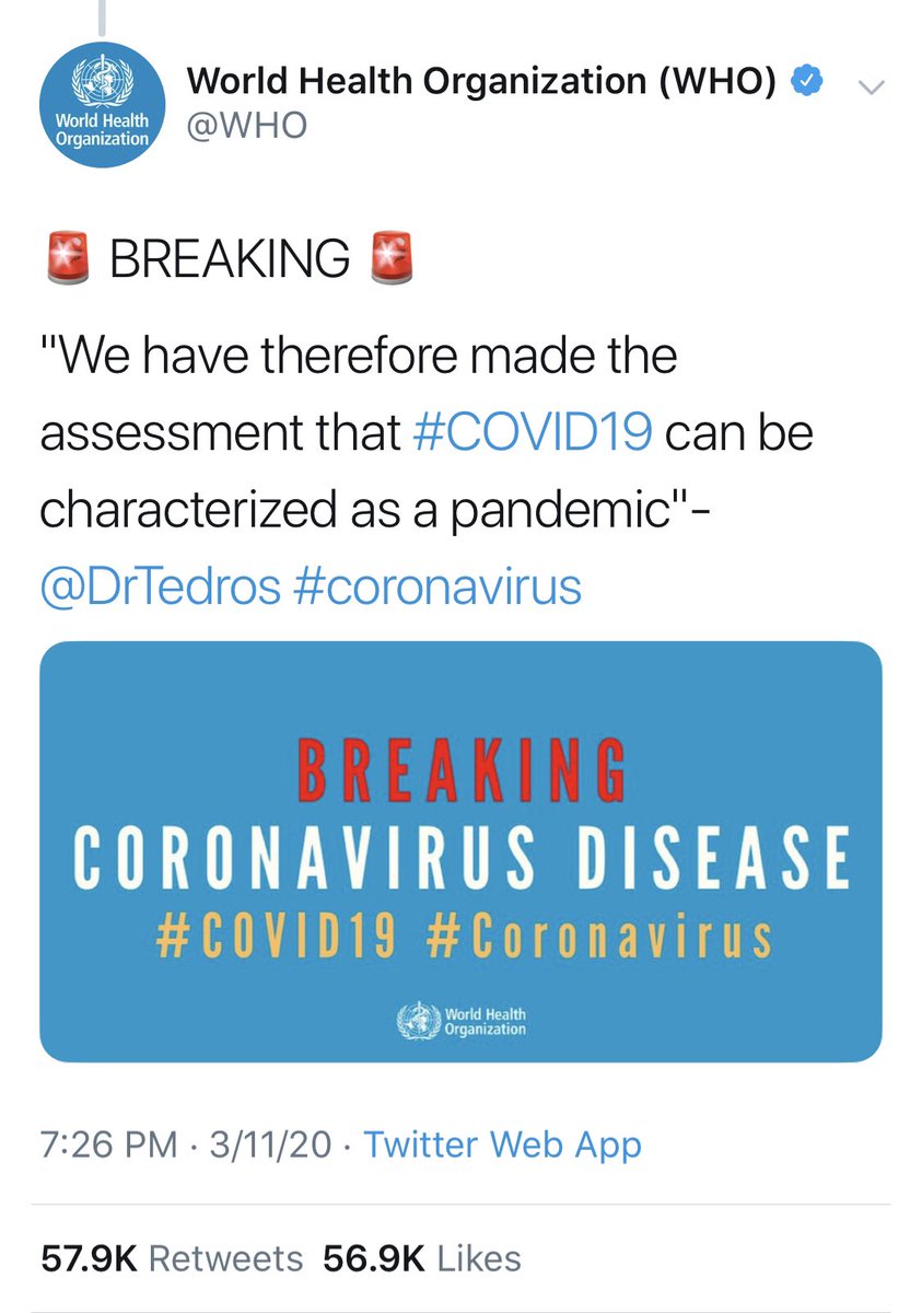 ثريد / في آخر تقارير منظمة الصحة العالميّة تم تصنيف فيروس #كورونا المستجد COVID-19 بأنه جائحة عالمية Pandemic ..
