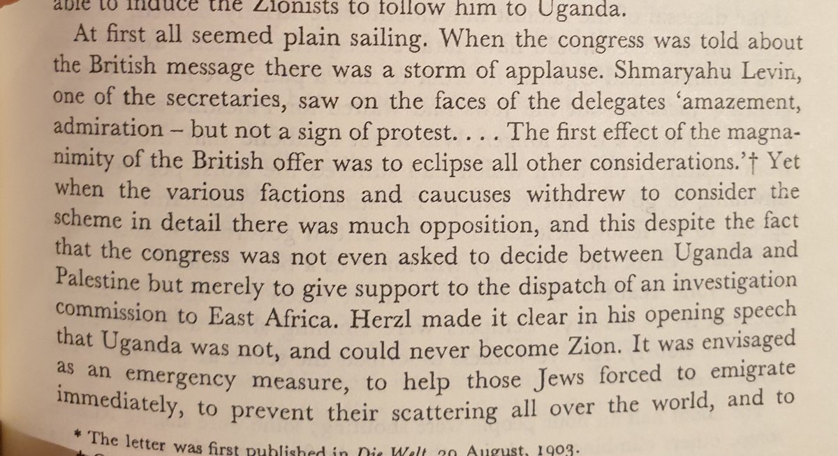 بعد فشل دبلوماسية هيرتزل مع المانيا القيصرية، في ١٩٠٠ اتجه لبريطانيا لحمل لواء المشروع الصهيوني. لكن بريطانيا وقتها مشغولة بحرب البور في جنوب افريقيا.