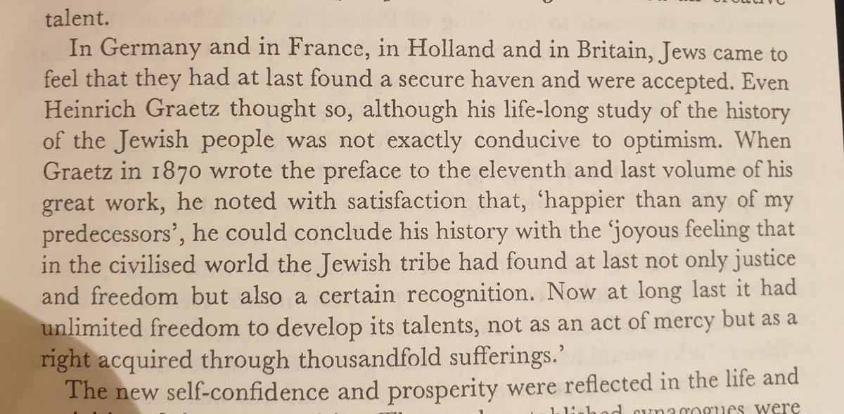 اليهود عموما في هولندا و بريطانيا و فرنسا و المانيا اصبح لديهم شعور عام بنهاية القرن التاسع عشر انهم تم قبولهم كبشر لاول مرة و اخذوا حقوقهم لاول مرة في التاريخ.