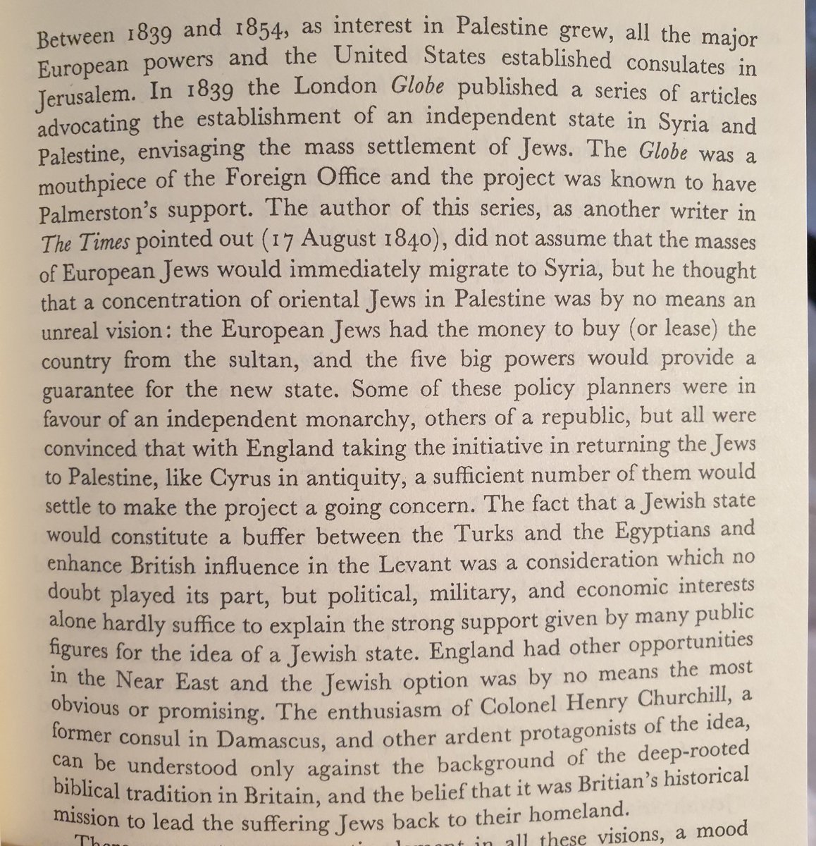 من ١٨٣٩ بدأ الاهتمام الغربي في فلسطين، بنفس العام أسست الولايات المتحدة قنصلية في القدس. ايضا صحيفتي الغلوب و التايمز البريطانيتين المهمتين بدأو بنشر تقارير و مقالات عن اهمية فلسطين لبريطانية و ان هناك واجب اخلاقي على بريطانيا بأنشاء وطن لليهود هناك.