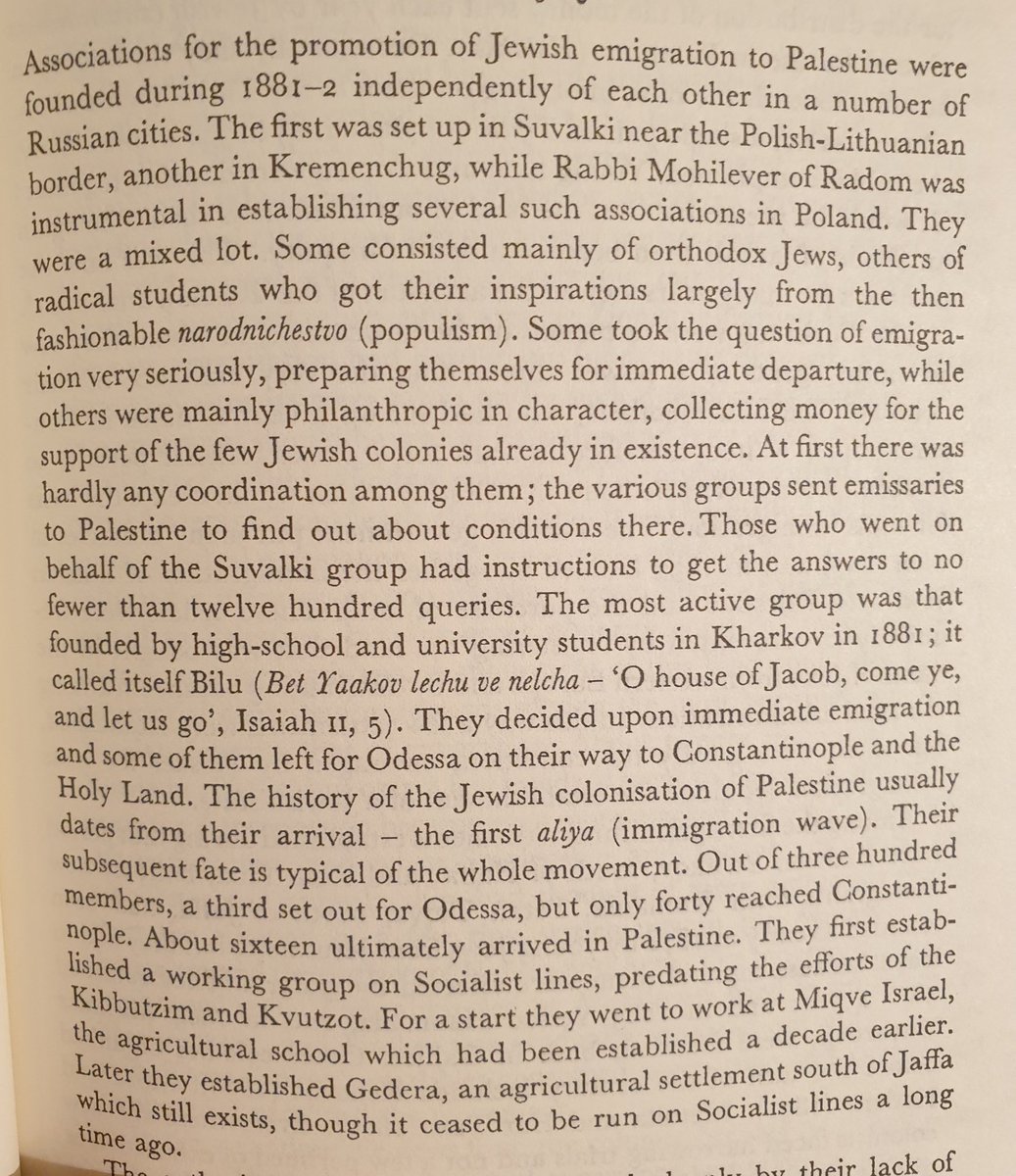ما بين ١٨٨١-١٨٨٢ كون يهود شرق اوروبا جمعيات مستقلة للهجرة الى فلسطين. كان خط الهجرة من روسيا الى اسطنبول و من ثم الاستيطان في فلسطين.