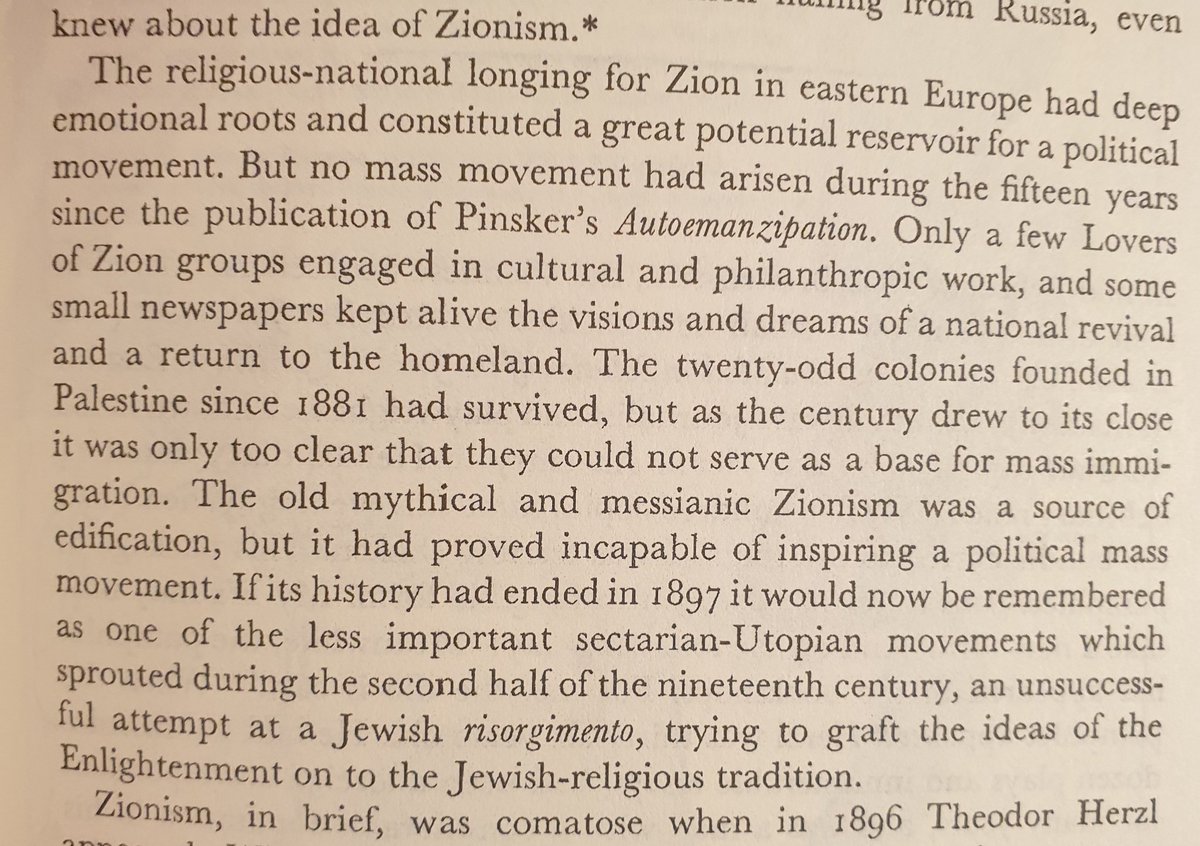 العله الاكبر في الصهيونية كانت من واقعها العملي. الى الحرب العالمية الاولى ١٩١٤ كان الهجرات لفلسطين جدا ضعيفة و تعد بالعشرات. غالبية اليهود يرفضون الهجرة لفلسطين و غير متقبلين للفكر الصهيوني.