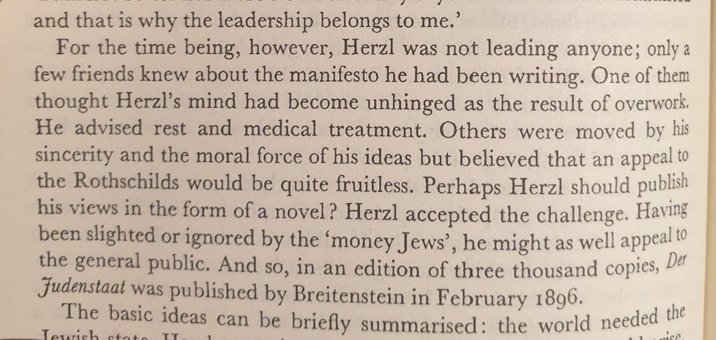 هيرتزل من البداية كان يائس من مساندة اثرياء اليهود للمشروع الصهيوني، لهذا لجأ لعامة اليهود من خلال طبع كتابه و ترويجه لكسبهم.