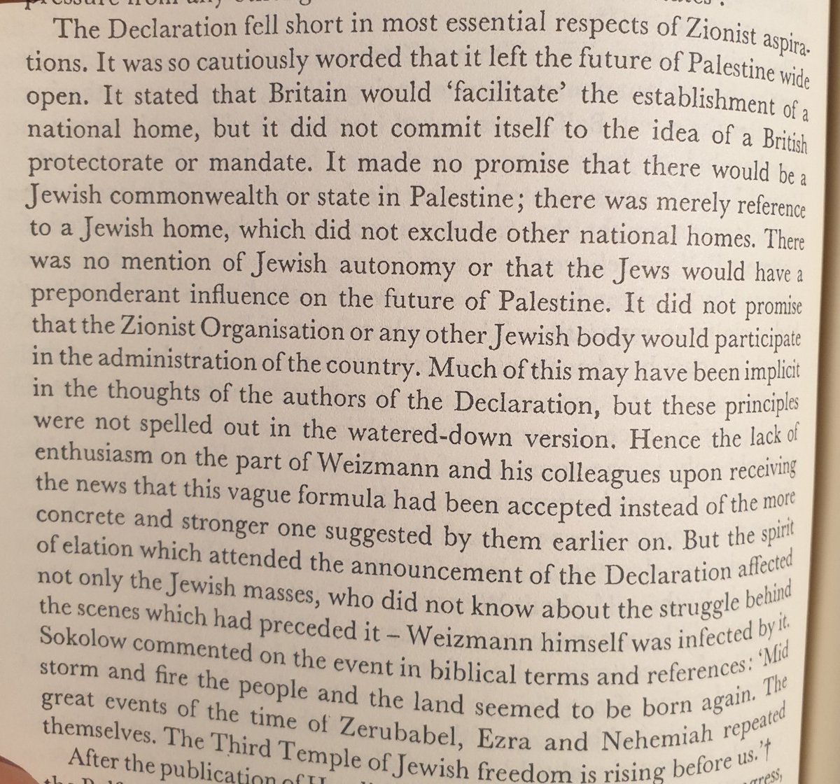 وايزمان كان معجب في بريطانيا و يكاد يكون الوحيد من بين قادة الحركة الصهيونية مؤمن ان بريطانيا هي خلاص الحركة الصهيونية بتأسيس وطن قومي في فلسطين.