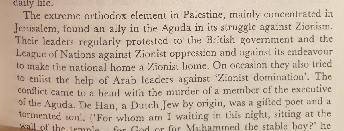 يهود ارثوذكس القدس كانوا رأس الحربة في محاربة الحركة الصهيونية. كانوا يلجؤون للبريطانيين لتخريب الحلم الصهيوني و مرات حتى يتواصلون مع العرب لتحالف مشترك.