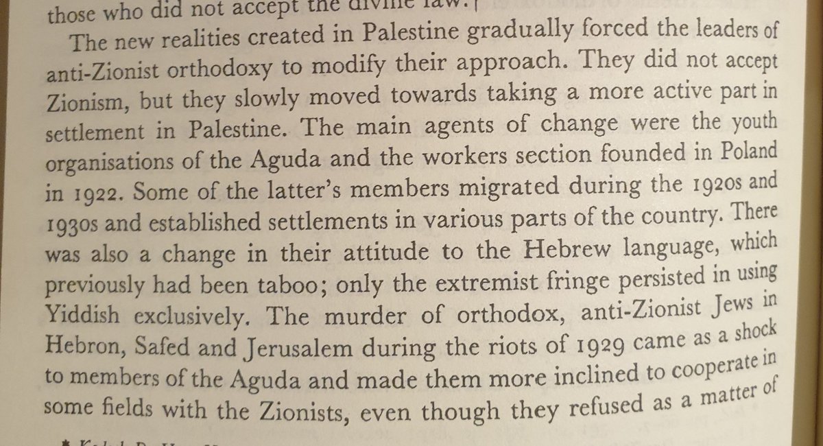 تغير موقف الارثوذكس اليهود اتجاه الحركة الصهيونية لما قتل البعض من رجال دينهم على يد العرب بالخطأ في انتفاضة ١٩٢٩. بعدها حصل تعاون مع الحركة الصهيونية.