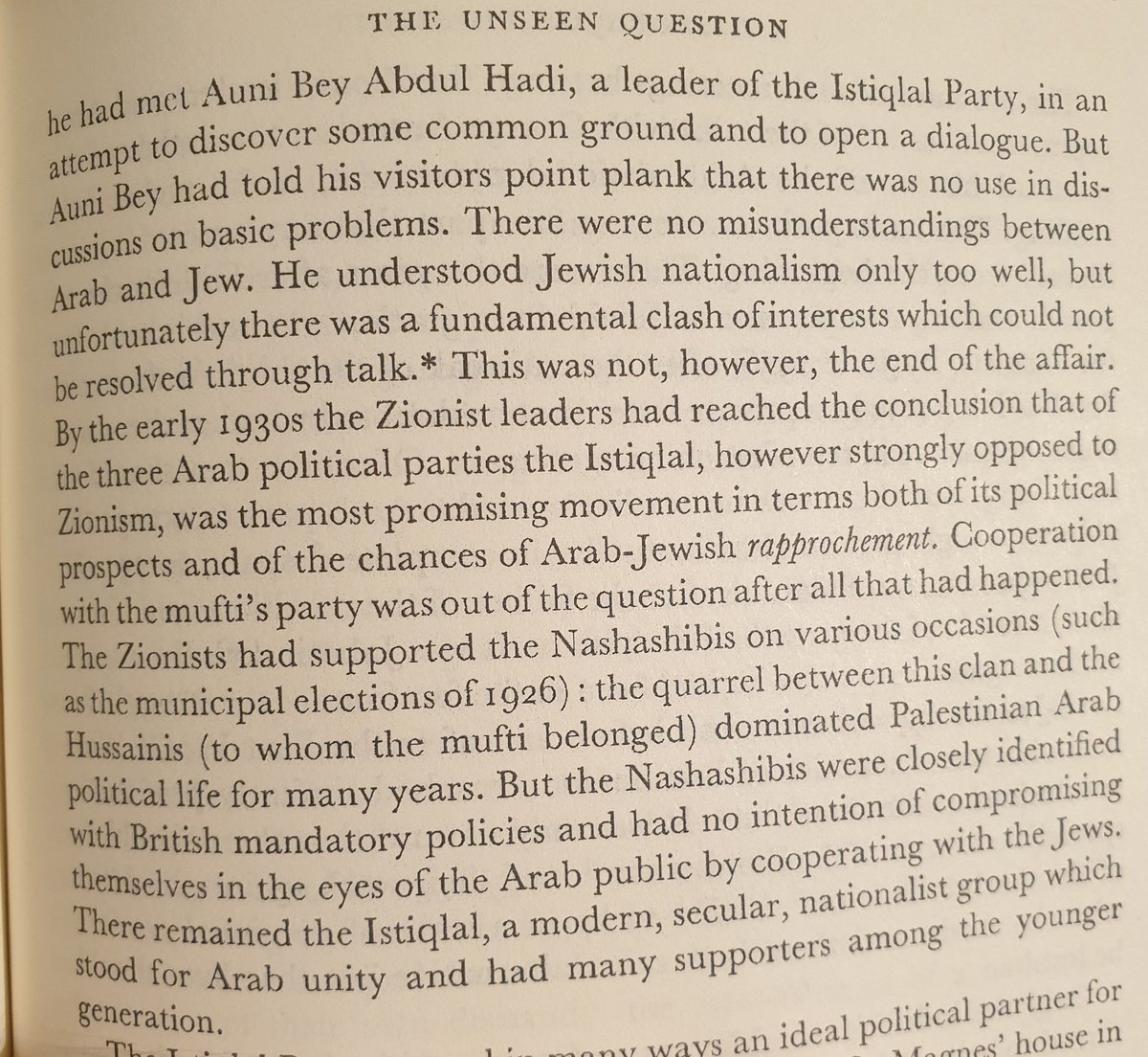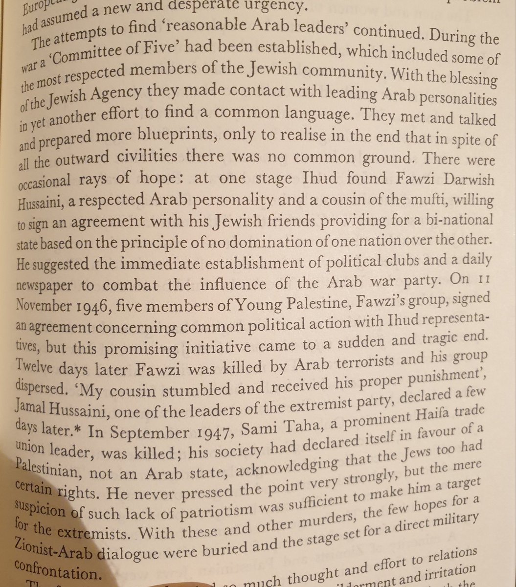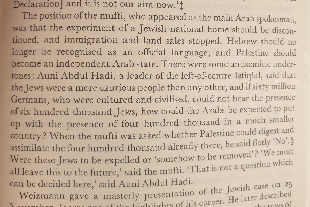 مفتي فلسطين و الرجل الابرز و الاقوى الحاج امين الحسيني في الثلاثينات كان موقفه جدا صارم اتجاه اليهود. رافض اي حل معهم و بل عليهم الرحيل من فلسطين فورا من غير اى شروط.