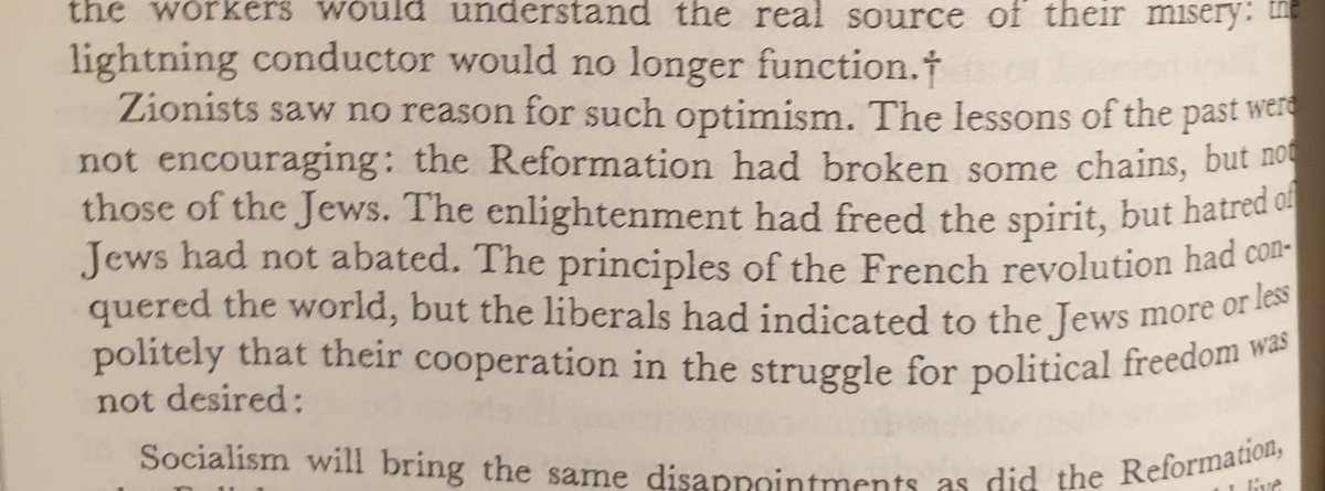 الصهاينة يبررون فكرهم انهم مروا بكل الاصلاحات الاوروبية من الاصلاح الكنسي الى التنوير الى الثورة الفرنسية، لكن اليهود لا يتعدل حالهم و تبقى العنصرية ضدهم.