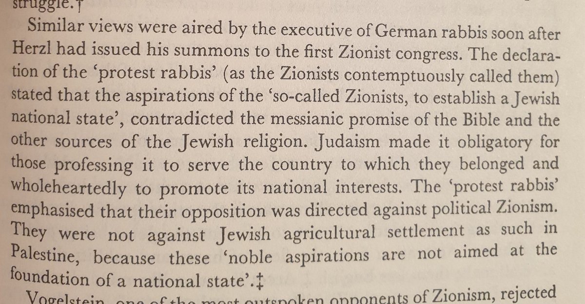 رجال الدين اليهود الالمان اول من هاجم الفكر الصهيوني و اعتبروه ضد التعاليم الدينية و الانتظار للمخلص في أخر الزمان.