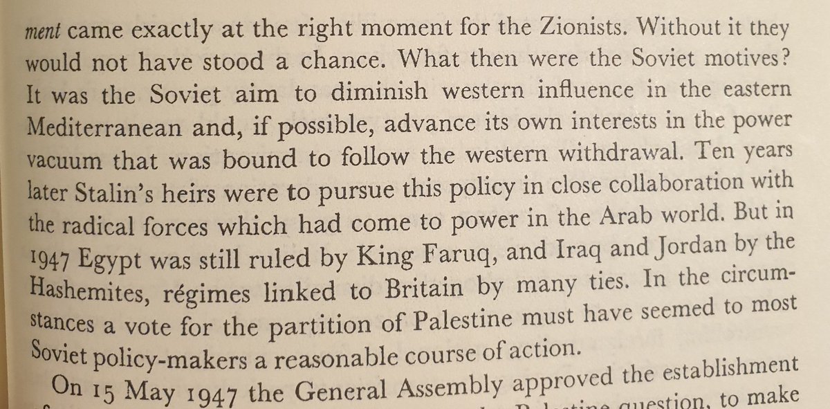 الاتحاد السوفيتي وقتها تحت ستالين يريد نفوذ بالشرق الاوسط، و غالبية الانظمة العربية ملكية اتجاهها غربي. وجد السوفييت بالوقوف مع حركة ثورية مثل الصهيونية الغاية لمد نفوذها و طرد الغرب من الشرق الاوسط.