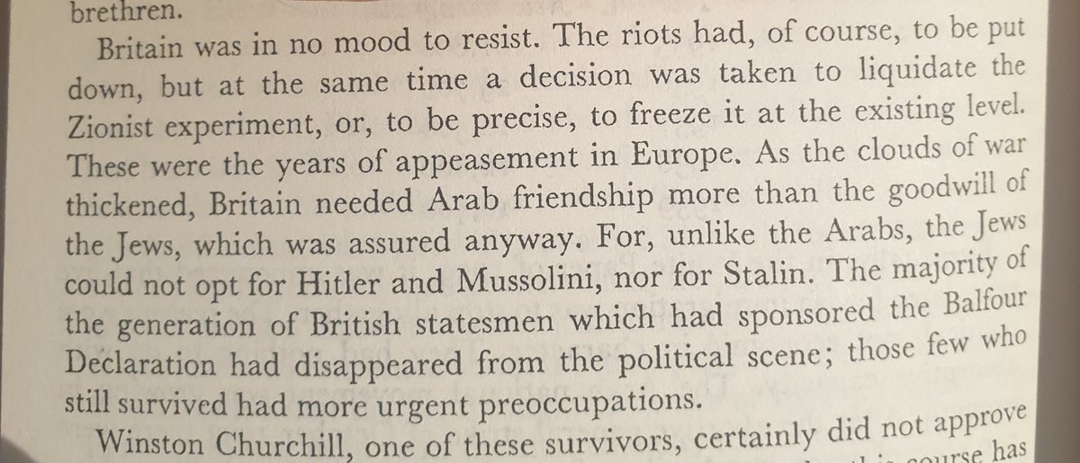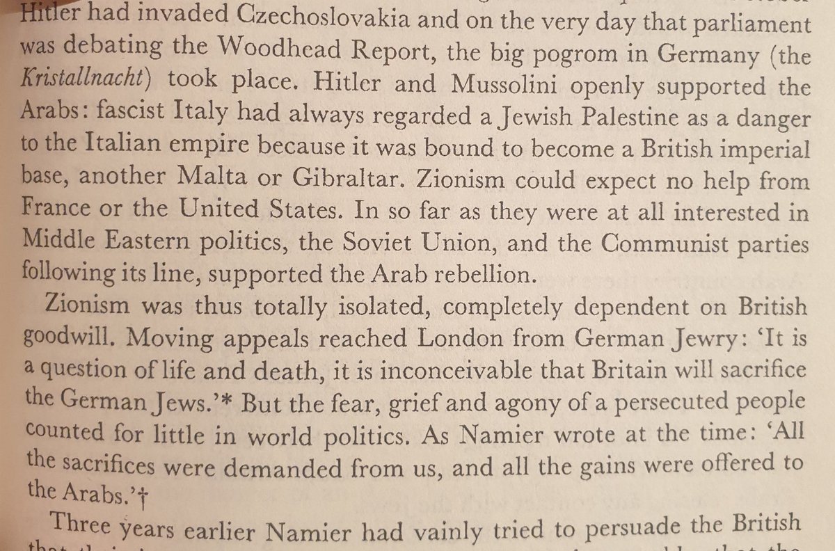 فترة الثلاثينات كانت بريطانيا تميل اكثر لحقوق العرب. كانت اكثر عدائية اتجاه المشروع الصهيوني لكي تحقق الاستقرار في العالم الاسلامي لمواجهه النازية. حتى السياسيين البريطانيين من عهد وعد بيلفور اعتزلوا.