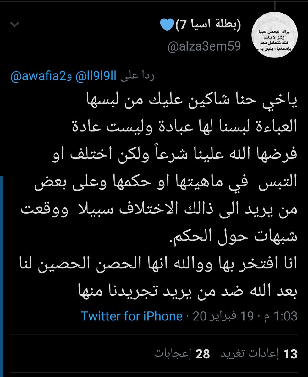٥- لماذا يتنمر @awafia2 على حجاب المرأة؟