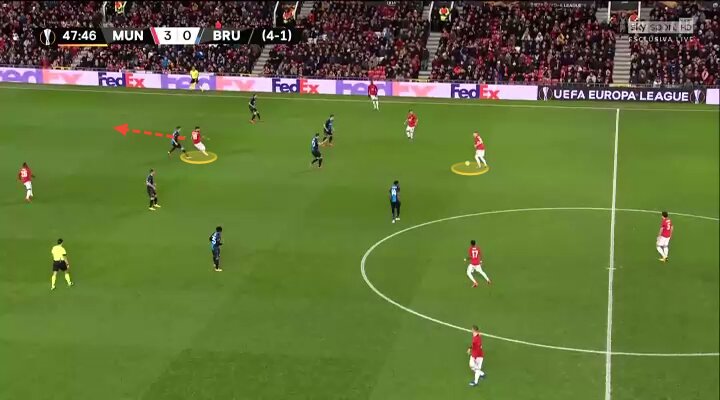 إذ أن برونو فرنانديش مميز جدًا أيضًا في معرفته لمتى يتوقف عن الحركة سواء بالكرة أو بدونها.