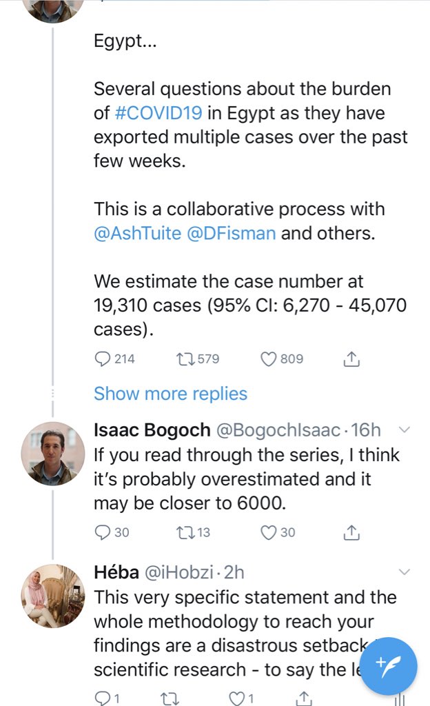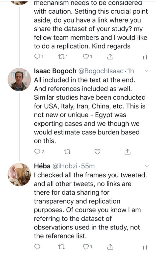 طيب يا جماعة فيه باحث نشر statement عن مصر وماينفعش اسميها بحث لأنها لا ترقى لأصول البحث العلمي وماتقبلتش للنشر بعد التحكيم من محكمين في مجاله ولا اتقبلت ك preprint فقرر ينشرها على تويتر. لحد هنا عادي وممكن نقول عايز يضمن حقوق الملكية ويثبت اي نتايج قبل ماحد تاني ينشر بس الغريب..