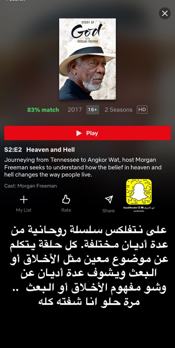 برنامج story of godوثائقي روحاني ويقارن الأديان كل حلقة مفهوم معين مثل الحياة، البعث، الشفيع