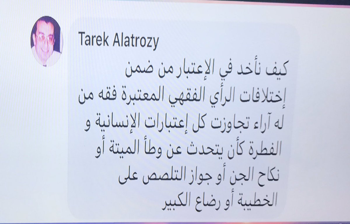 نعود لسؤال الدكتور طارق: هل يجوز ان نعتبر فتاوى من قال مثلا فتوى رضاع الكبير او نكاح الميتة او زواج الاطفال ويجب الا ناخد منهم فتوى مطلقا .. لكن اقول مامن انسان الا ويقول حسنا او سيئا .. كلنا هكذا مامن بشر الا ويؤخذ منه ويرد عليه ..