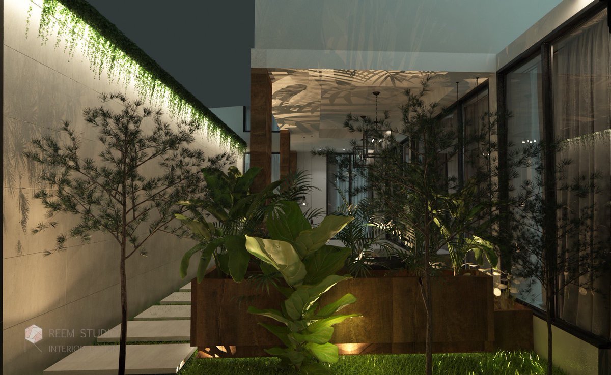 تصميم الحديقة الداخلية للدور الأرضي ، واللي اطلالتها من الصالة و مجلس النساء ..
