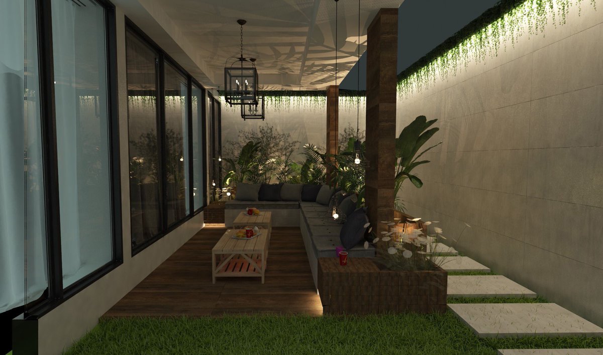 تصميم صالة المعيشة مُطلة على حديقة البيت #جدة