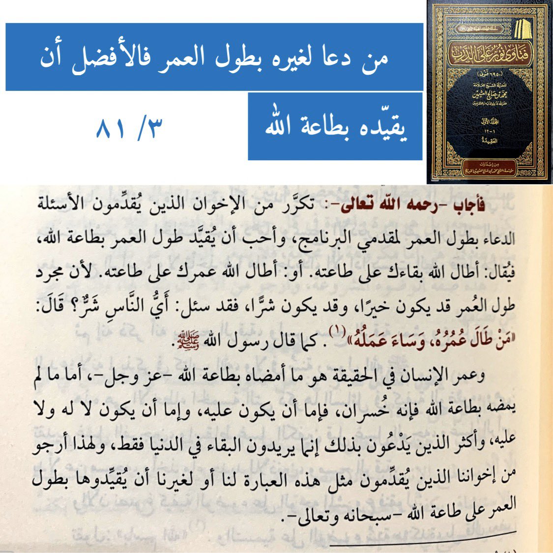 من دعا لغيره بطول العمر فالأفضل أن يقيّده بطاعة الله.