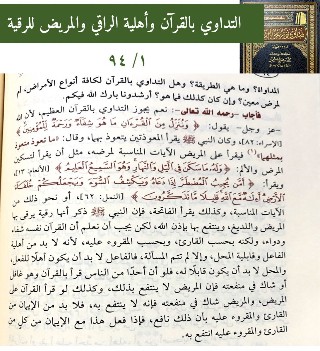 التداوي بالقرآن، وأهمية أهلية الراقي والمريض للرقية.