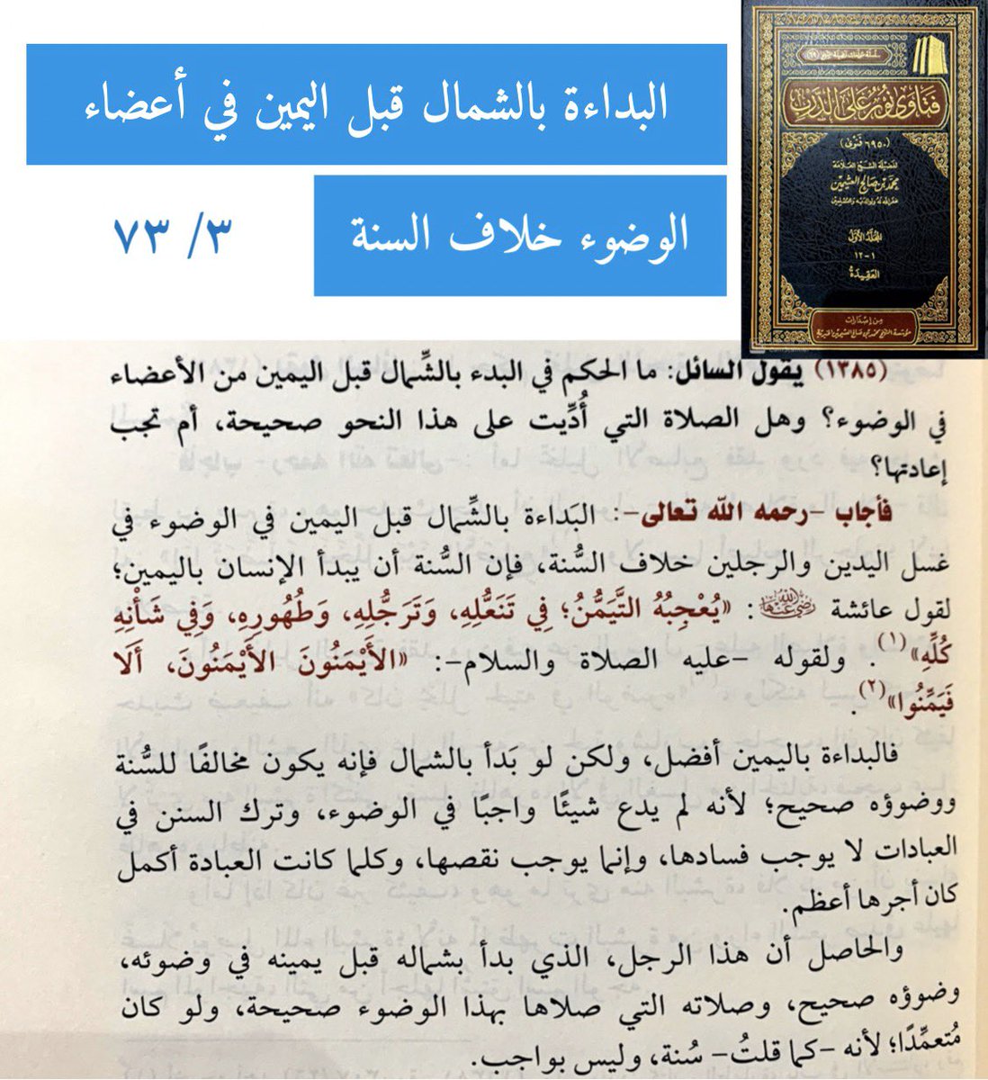 البداءة بالشمال قبل اليمين في أعضاء الوضوء خلاف السنة.