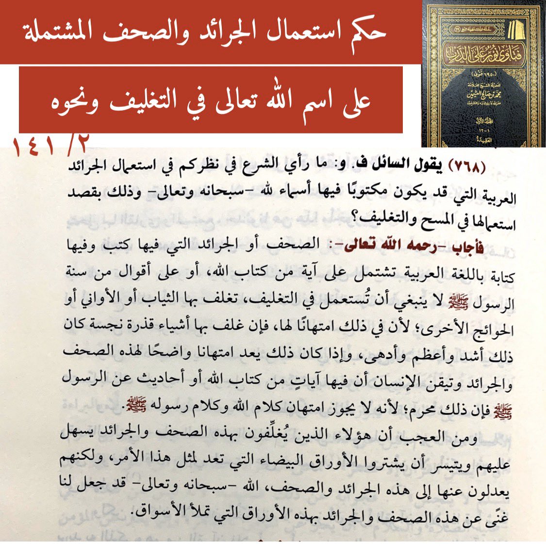 حكم استعمال الجرائد والصحف المشتملة على اسم الله تعالى في التغليف ونحوه.