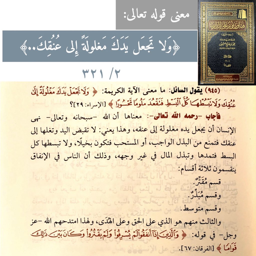 ﴿وَلا تَجعَل يَدَكَ مَغلولَةً إِلى عُنُقِكَ وَلا تَبسُطها كُلَّ البَسطِ فَتَقعُدَ مَلومًا مَحسورًا﴾