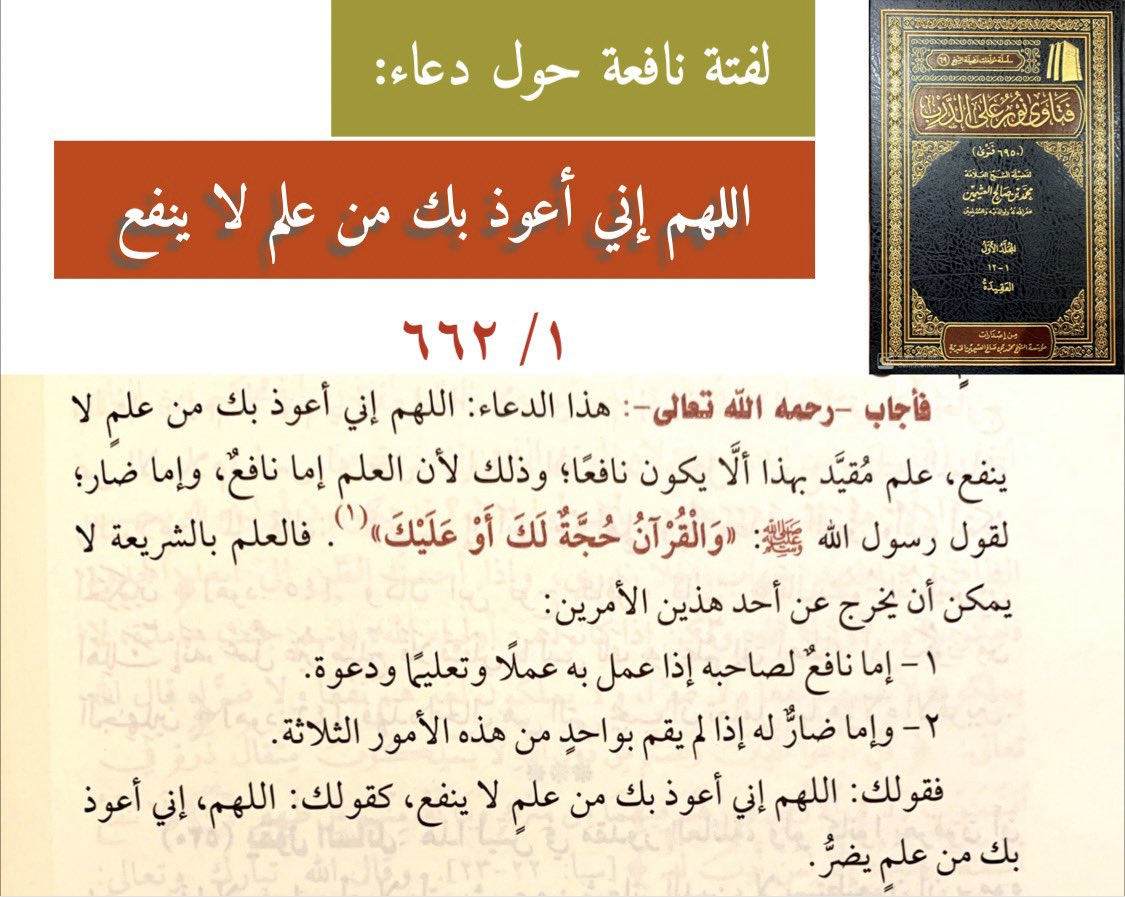 لفتة نافعة حول دعاء: (اللهم إني أعوذ بك من علم لا ينفع)