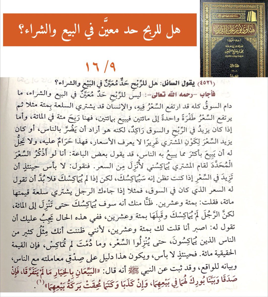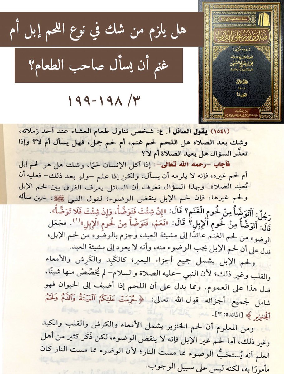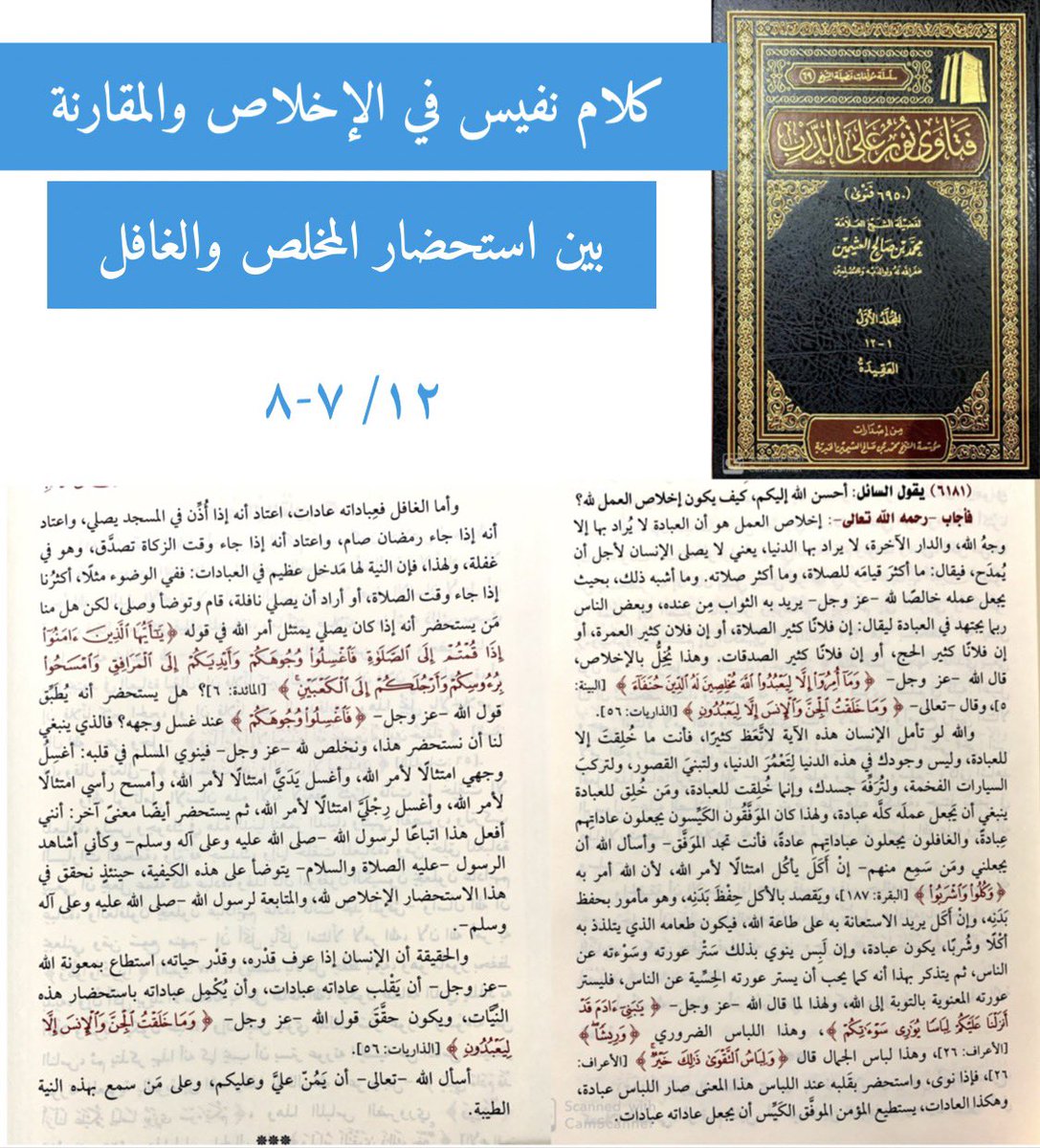 سأضع هنا تباعًا، وبصورة الفائدة، انتقاءات من كتاب (فتاوى نور على الدرب ١٢ مجلداً) لشيخنا #ابن_عثيمين