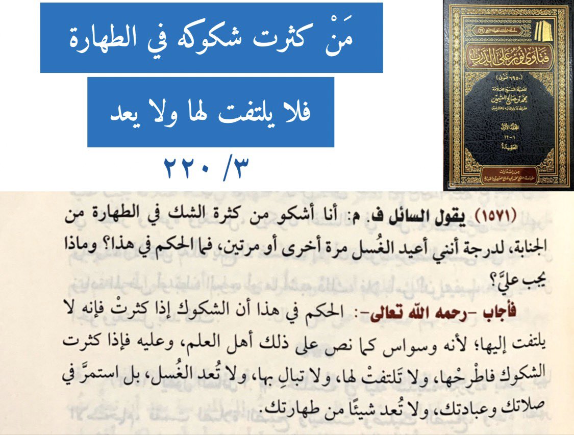 من كثرت شكوكه في الطهارة فلا يلتفت ولا يعد.