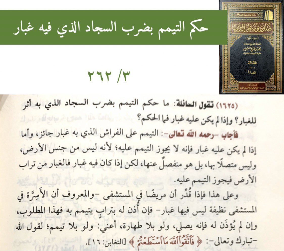 حكم التيمم بضرب السجاد الذي فيه غبار.